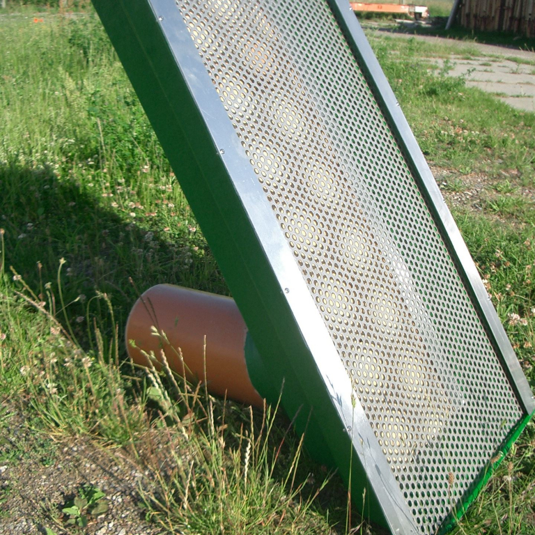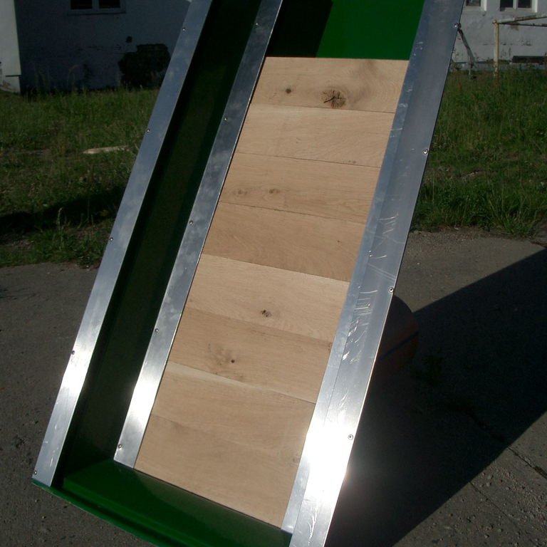 Dieser Teichmönch wird in den Längen 1,0 m / 1,5 m / 2,0 m angefertigt. Am Teichmönch sind 2 Paar Aluminiumfalze angebracht. Die vorderen Falze sind für das Ablaufsieb aus Edelstahl mit 10 mm Lochung. In die hinteren Falze werden die Staubretter für die Wasserregulierung eingeschoben. Auf Wunsch ist der Teichmönch auch ohne Staubretter und Ablaufsieb lieferbar.